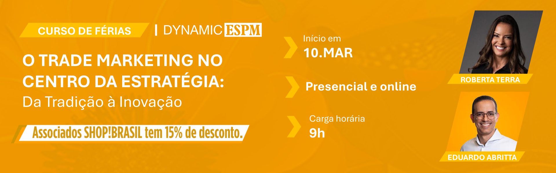 Com apoio institucional da SHOP!BRASIL, a ESPM realiza o curso “O Trade Marketing no Centro da Estratégia – Da Tradição à Inovação”, uma experiência de aprendizado voltada a profissionais que atuam no ecossistema de varejo, indústria, trade marketing, shopper marketing e experiência no ponto de venda.